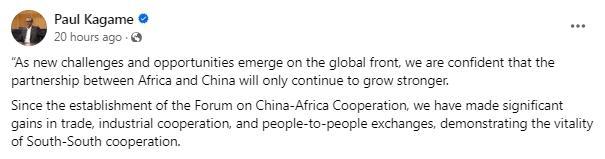 圖片來源:盧旺達(dá)總統(tǒng)卡加梅社交媒體賬號(hào)截圖