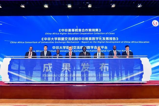 開幕式后,舉行了中非教育合作系列重大項目簽約儀式及重大合作成果發(fā)布會。14項中非教育合作項目簽約,《中非高等教育合作案例集》《中非大學(xué)聯(lián)盟交流機制中非教育數(shù)字化發(fā)展報告》等成果正式發(fā)布,“中非大學(xué)聯(lián)盟交流機制數(shù)字合作平臺”正式啟動。