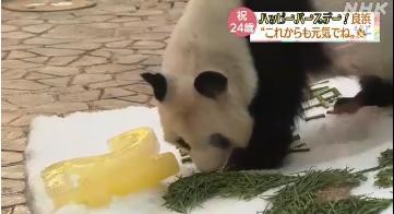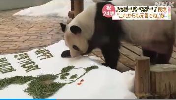 報道稱,為向“良濱”表達感謝,工作人員送上了生日禮物——在人造雪上用竹葉畫出“良濱”的形象,用劈開的竹子寫成生日祝福等。