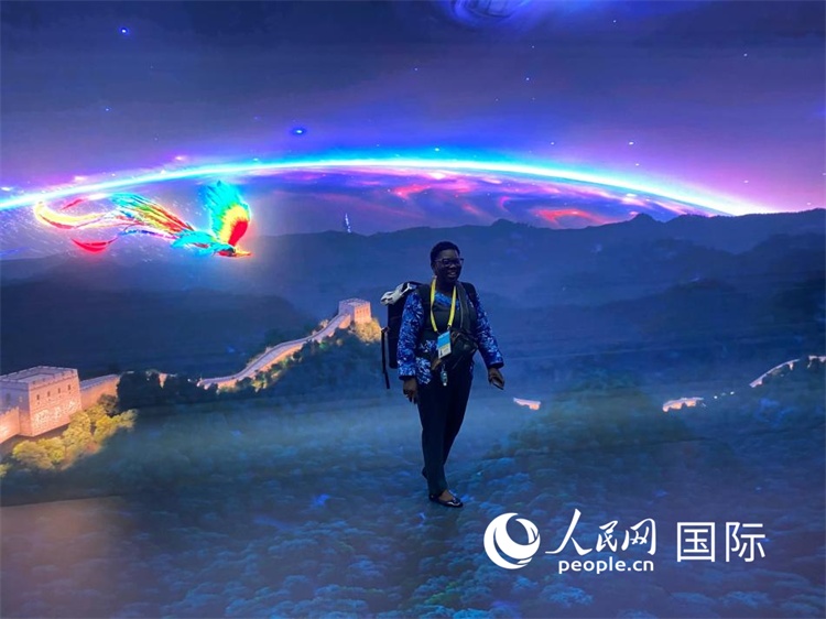 非洲媒體記者在新聞中心通過超高清技術(shù),沉浸式體驗中國壯美河山。人民網(wǎng)記者 于洋攝