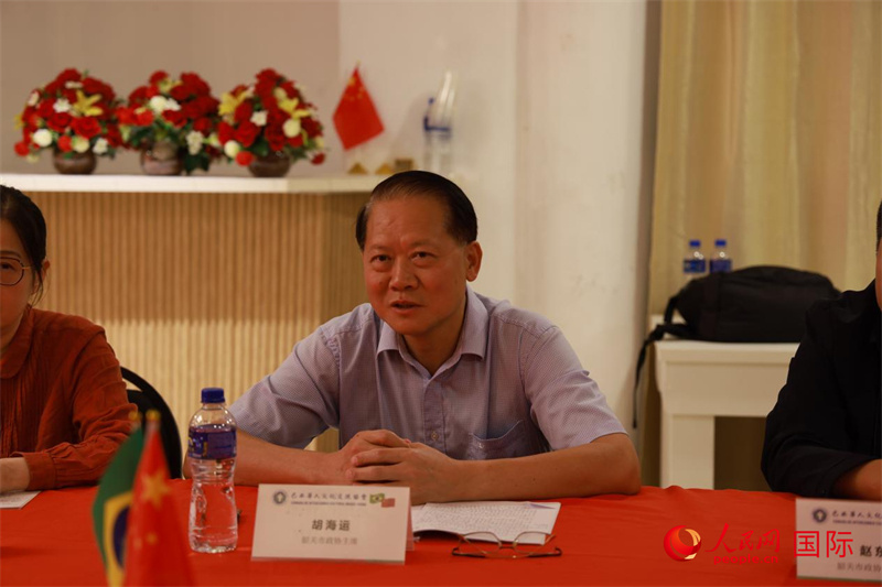 胡海運(yùn)介紹了韶關(guān)市基本情況和近年來取得的發(fā)展成就。他表示,韶關(guān)市堅(jiān)持以生態(tài)為特色優(yōu)勢(shì),高質(zhì)量融入“雙區(qū)”建設(shè)。目前,全市初步形成以鋼鐵、有色冶金等優(yōu)勢(shì)傳統(tǒng)產(chǎn)業(yè)為基礎(chǔ),以先進(jìn)裝備制造、大數(shù)據(jù)、醫(yī)藥健康等新興產(chǎn)業(yè)為特色的產(chǎn)業(yè)發(fā)展格局。此外,韶關(guān)市不僅是全國(guó)重點(diǎn)僑鄉(xiāng),還擁有豐厚的文化底蘊(yùn),并將舉辦第五屆世界廣府人懇親大會(huì)。希望通過與巴西文協(xié)等在巴華僑華人社團(tuán)的合作,進(jìn)一步加強(qiáng)與旅巴僑胞的聯(lián)系,并歡迎廣大僑胞到訪韶關(guān),挖掘更多合作機(jī)遇。