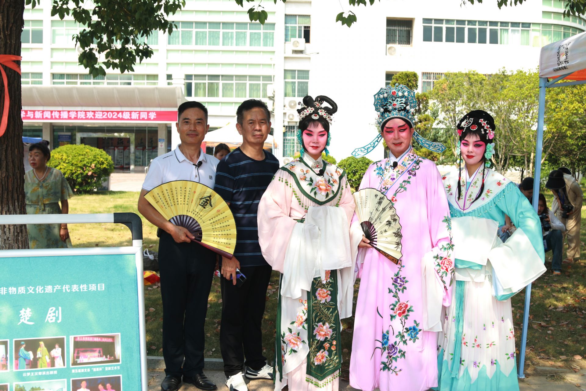雕花剪紙,于刀尖婉轉(zhuǎn)處刻下一輪心意;麥稈畫,一絲絲纖維幻化出神奇的姿態(tài);百年楚劇,一腔一調(diào),流瀉出深厚的歷史意蘊(yùn)……各種非遺項(xiàng)目在眼前如火如荼地展開,深厚的文化底蘊(yùn)讓在場的師生們目不暇接,流連忘返。