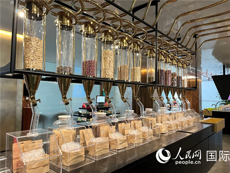 代表團(tuán)團(tuán)員對(duì)新中式茶飲的食材充滿興趣。人民網(wǎng)記者 陳思攝
