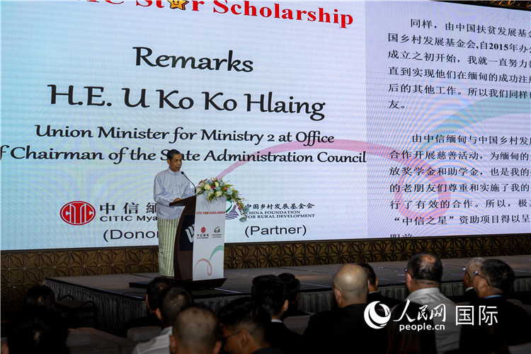 人民網(wǎng)仰光9月12日電 (記者謝佳君)9月12日,由中信緬甸捐贈(zèng)、中國(guó)鄉(xiāng)村發(fā)展基金會(huì)負(fù)責(zé)實(shí)施的“中信之星”獎(jiǎng)助學(xué)金項(xiàng)目在仰光正式啟動(dòng)。中國(guó)駐緬甸大使馬珈,緬甸國(guó)家管理委員會(huì)主席辦公室部二部部長(zhǎng)哥哥萊、宣傳部長(zhǎng)貌貌翁,中信緬甸總經(jīng)理梁傳新,中國(guó)鄉(xiāng)村發(fā)展基金會(huì)秘書(shū)長(zhǎng)陳紅濤出席并致辭,受助學(xué)校師生代表及中緬社會(huì)各界人士參加活動(dòng)。