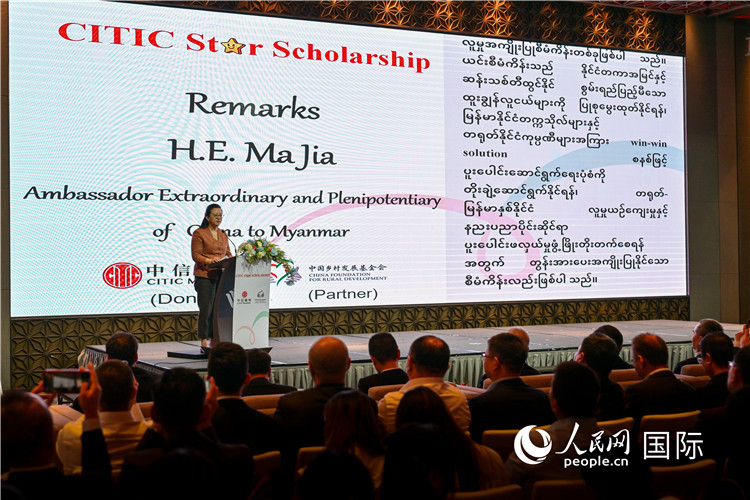 中國(guó)駐緬甸大使馬珈發(fā)表致辭。人民網(wǎng)記者 謝佳君攝