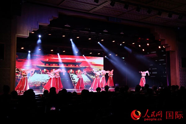 “天涯共此時,中泰月正圓”—慶中秋·天津藝術(shù)團專場演出現(xiàn)場,演員們帶來開場舞蹈《唐調(diào)·萬安》。人民網(wǎng)記者 楊一攝