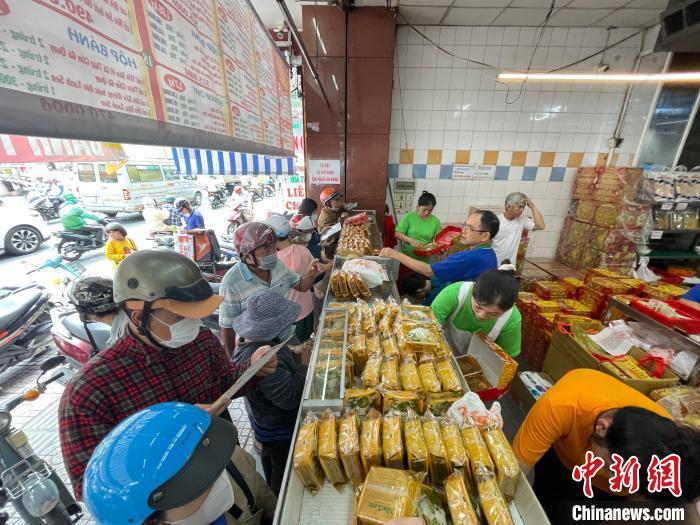 圖為越南胡志明市市民在購(gòu)買(mǎi)中秋月餅。饒艷玲 攝