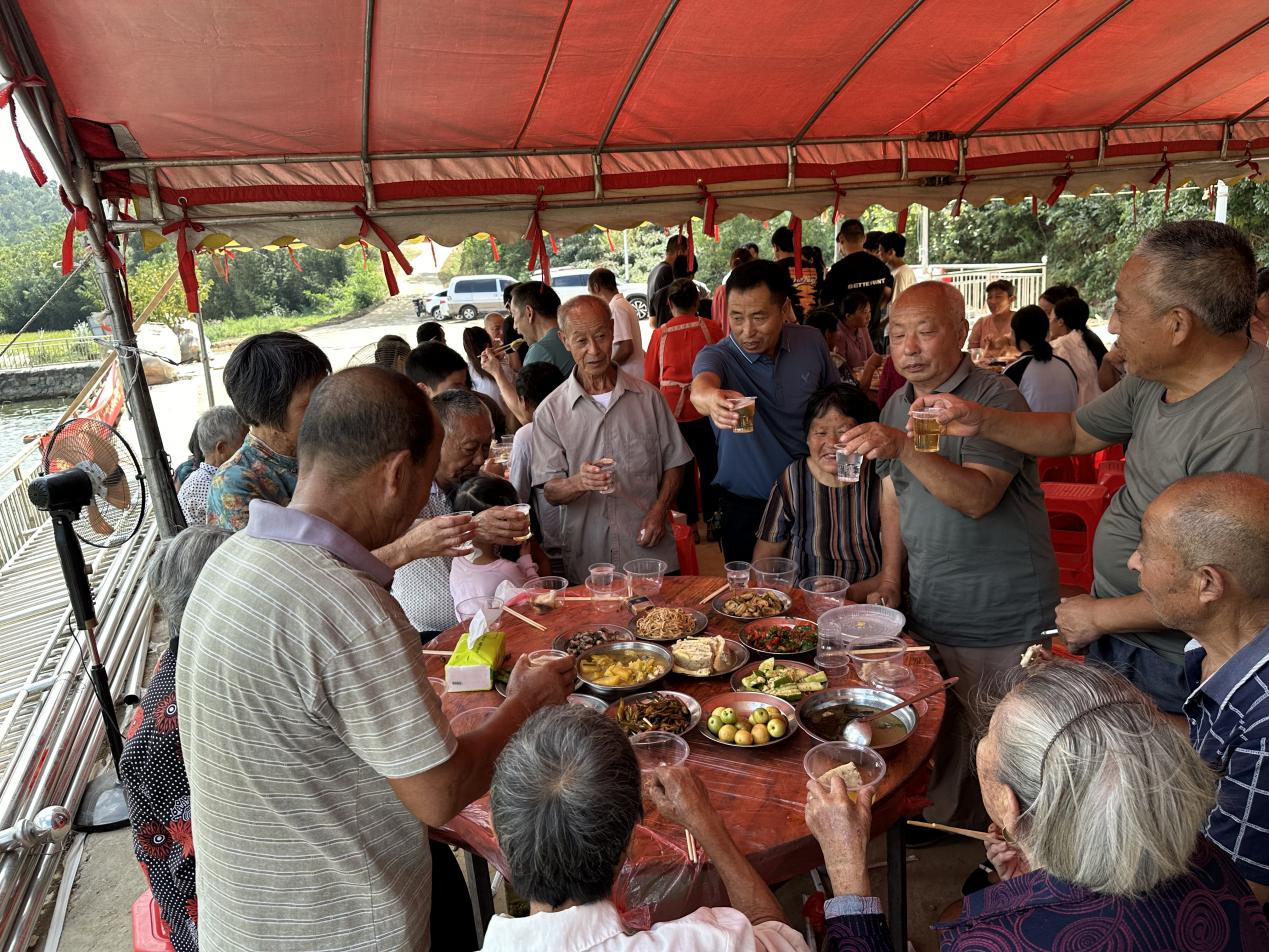 “菜來了!”晚上六點,團圓飯準時開始。大家舉杯同慶,共慶團圓。村“兩委”干部和村民們圍坐在一起,大家一邊品嘗著美食,一邊暢談村里自開展美好環(huán)境與幸福生活共同締造以來的喜人變化。