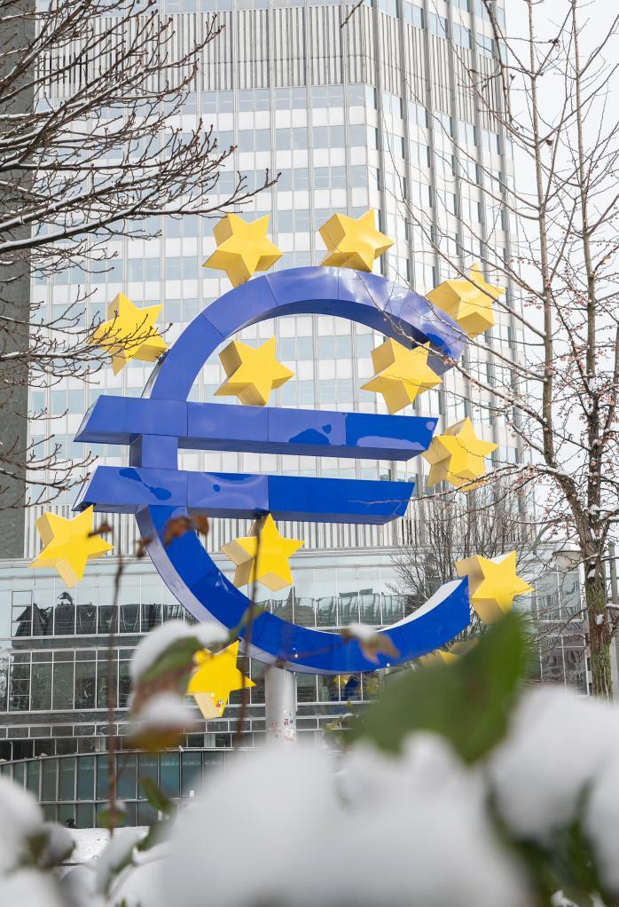 這是1月18日在德國法蘭克福拍攝的歐元標(biāo)識。新華社記者張帆攝
