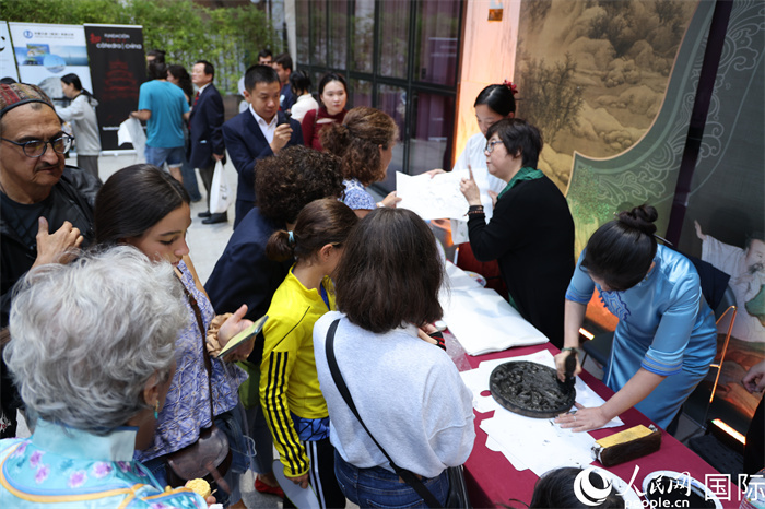 當(dāng)?shù)貢r(shí)間9月20日,西班牙民眾在馬德里文化中心觀覽“東方雅韻”文化和藝術(shù)展。人民網(wǎng)記者 許海林?jǐn)z