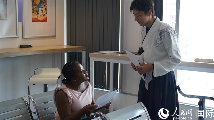 王清超老師耐心解答來賓對中文課程的咨詢。人民網(wǎng) 劉暢攝
