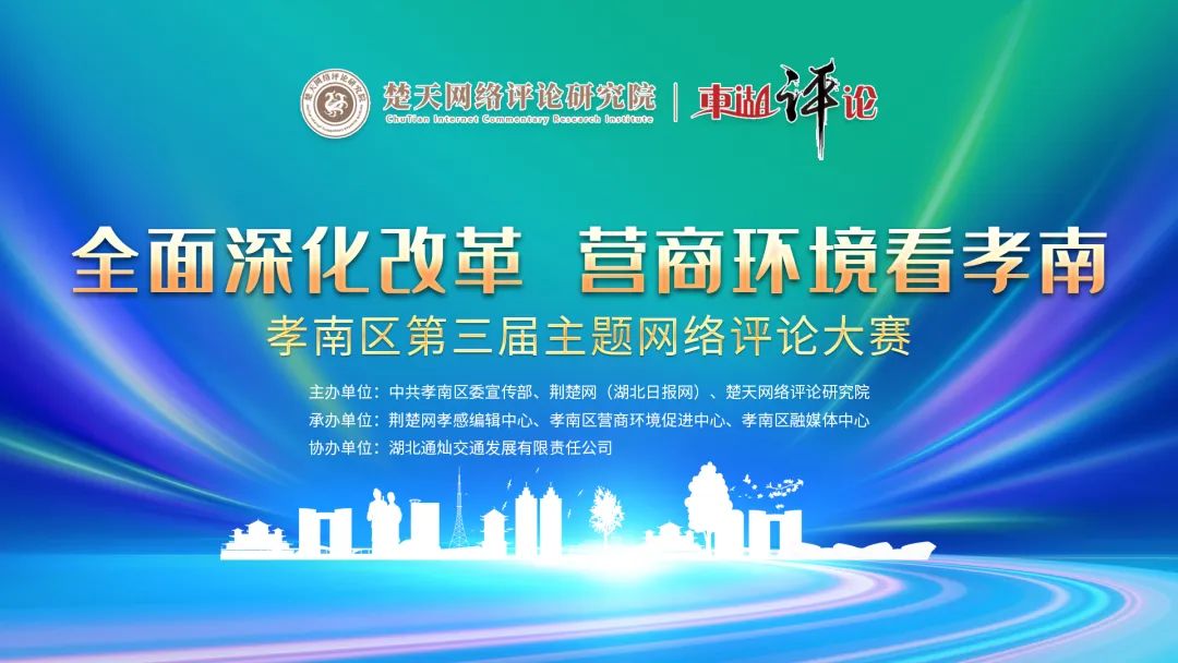本次大賽由中共孝南區(qū)委宣傳部、荊楚網(wǎng)(湖北日報網(wǎng))、楚天網(wǎng)絡(luò)評論研究院主辦,荊楚網(wǎng)孝感編輯中心、孝南區(qū)營商環(huán)境促進中心、孝南區(qū)融媒體中心承辦。大賽主題為:全面深化改革,營商環(huán)境看孝南。