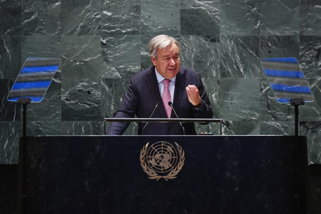 9月22日,在位于紐約的聯(lián)合國總部,聯(lián)合國秘書長古特雷斯在聯(lián)合國未來峰會上致辭。新華社記者李睿攝