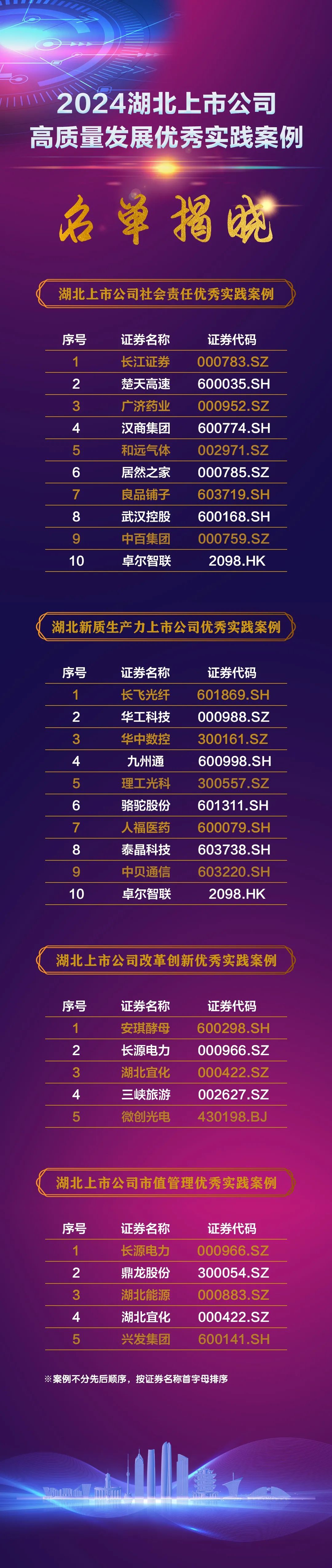 優(yōu)秀的企業(yè)總是自帶光芒。此次活動(dòng)現(xiàn)場還發(fā)布了《2024湖北上市公司高質(zhì)量發(fā)展優(yōu)秀實(shí)踐案例》,該案例由湖北日報(bào)編輯部、支點(diǎn)財(cái)經(jīng)/支點(diǎn)雜志編輯部聯(lián)合湖北省社會(huì)科學(xué)院、華中科技大學(xué)經(jīng)濟(jì)學(xué)院、武漢大學(xué)經(jīng)濟(jì)與管理學(xué)院、楚商智庫等智力支持單位,通過深度調(diào)研走訪、案例征集、模型搭建、數(shù)據(jù)分析、問卷調(diào)查等環(huán)節(jié),最終從社會(huì)責(zé)任、新質(zhì)生產(chǎn)力、改革創(chuàng)新、市值管理四個(gè)方面,共選取30個(gè)2023年表現(xiàn)優(yōu)秀的湖北上市公司案例,詳細(xì)解讀優(yōu)秀背后的成功密碼與經(jīng)驗(yàn)教訓(xùn),以期為更多企業(yè)提供參考借鑒。