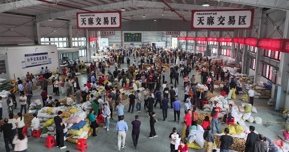 2023年10月15日,大別山道地藥材產業(yè)園交易市場在九資河鎮(zhèn)鳴鑼開市,當日成交額突破2500萬元,吸引了2000多名本地藥農進場售賣,400多名客商從陜西、云南、安徽等地慕名而來。