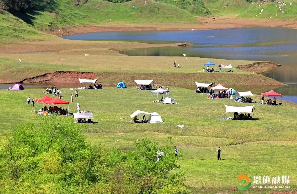 白楊坪鎮(zhèn)熊家?guī)r鱔孔壩濕地,春光明媚,市民在此踏青游玩,露營(yíng)野餐。