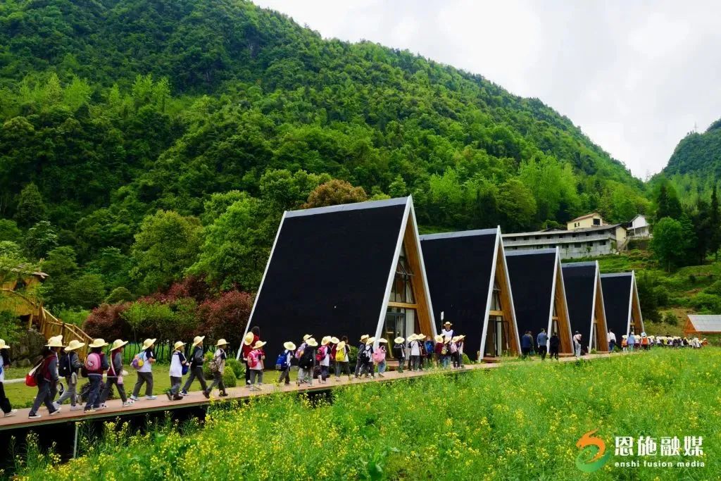 白果鄉(xiāng)下村壩村“塘里堂外”鄉(xiāng)村旅游綜合體,孩子們開(kāi)展戶(hù)外研學(xué)。
