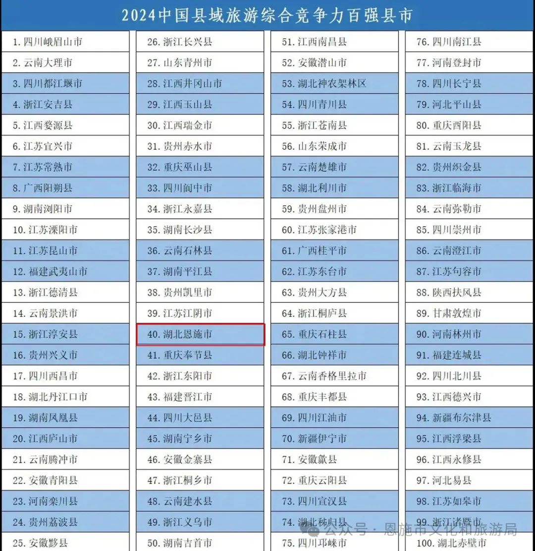 上榜2024中國(guó)縣域旅游綜合競(jìng)爭(zhēng)力百?gòu)?qiáng)縣市