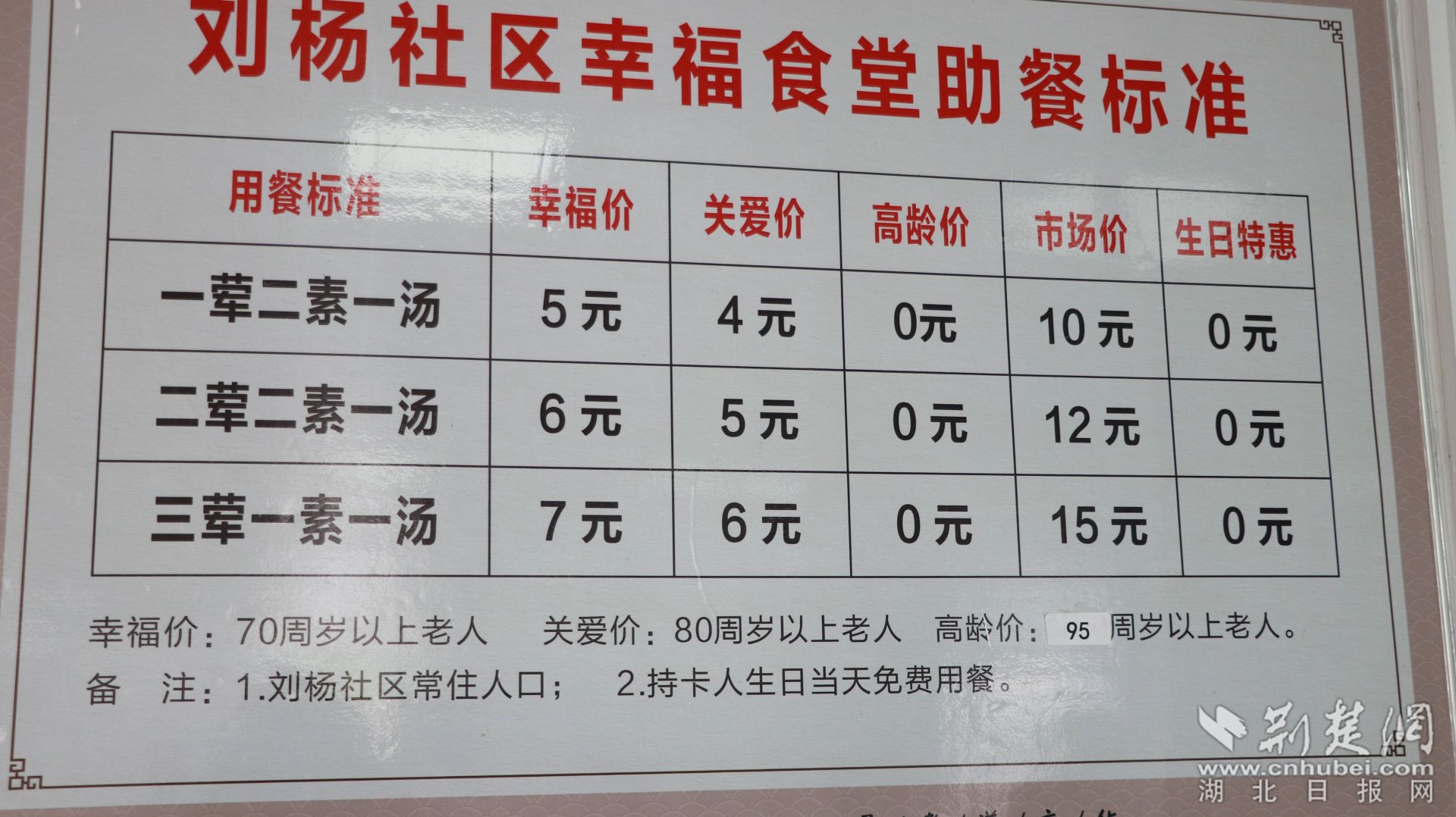 “幸福食堂”助餐標(biāo)準(zhǔn)。
