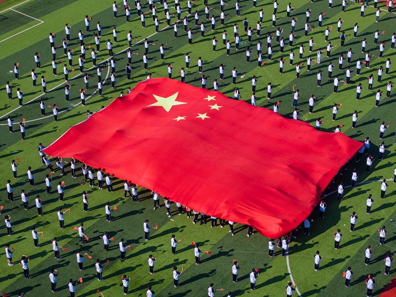 超大規(guī)格的國(guó)旗驚艷亮相。黃石日?qǐng)?bào) 周巍 攝