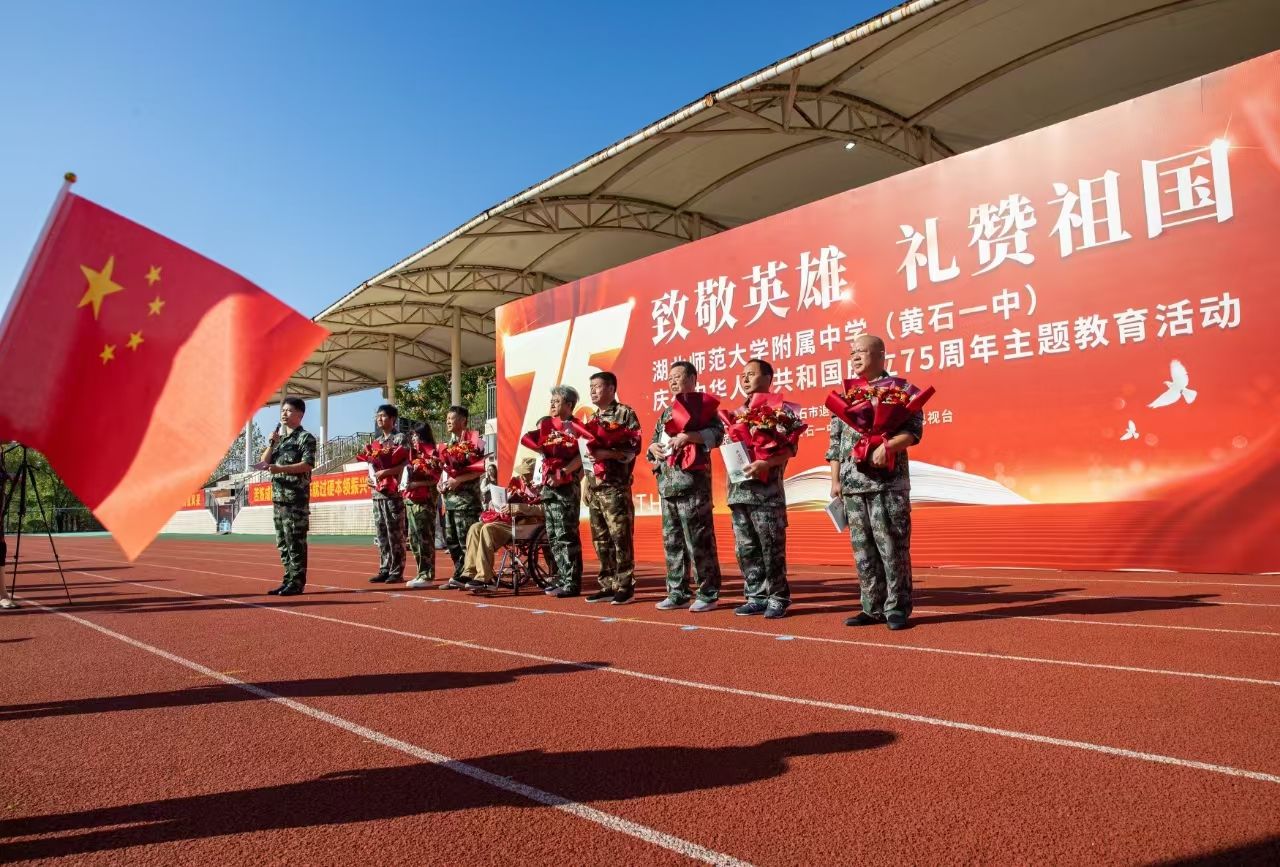 9月29日上午,國(guó)慶節(jié)臨近,“致敬英雄 禮贊祖國(guó)”——湖北師范大學(xué)附屬中學(xué)(黃石一中)慶祝中華人民共和國(guó)成立75周年活動(dòng)舉行。活動(dòng)通過(guò)走一次紅地毯、唱一首主題歌、獻(xiàn)一束手捧花、送一本報(bào)道集等形式,致敬為共和國(guó)無(wú)私奉獻(xiàn)的英雄們。