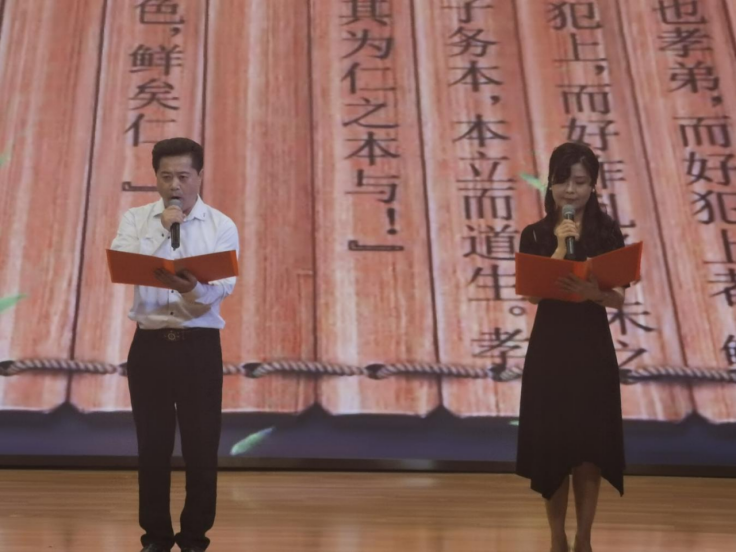 活動在莊嚴(yán)而熱烈的氛圍中拉開序幕,市委宣傳部副部長范錫建首先發(fā)表致辭。致辭結(jié)束后,一系列豐富多彩的文藝節(jié)目輪番上演,令人目不暇接。女聲獨唱《芝蘭》、舞蹈《祭拜曲舞》、詩朗誦《孔子:智慧之光》、情景劇《傳承》、集體誦讀《對話論語》等節(jié)目以各自獨特的藝術(shù)表現(xiàn)形式,頌揚了孔子的儒家思想與人格魅力,展現(xiàn)了中華文化的博大精深。
