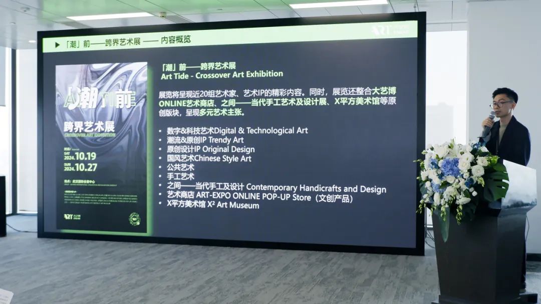 發(fā)布會上,大藝博ONLINE負責人陳靜勇介紹了大藝博ONLINE跨界互聯(lián)的案例與本屆大藝博跨界展示專區(qū)“「潮」前——跨界藝術展”的精彩亮點