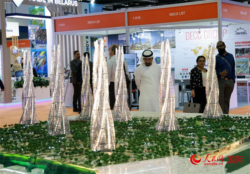 第二十六屆迪拜國(guó)際水處理、能源及環(huán)保展上,觀眾在參觀綠色城市構(gòu)想沙盤(pán)。人民網(wǎng)記者 管克江攝