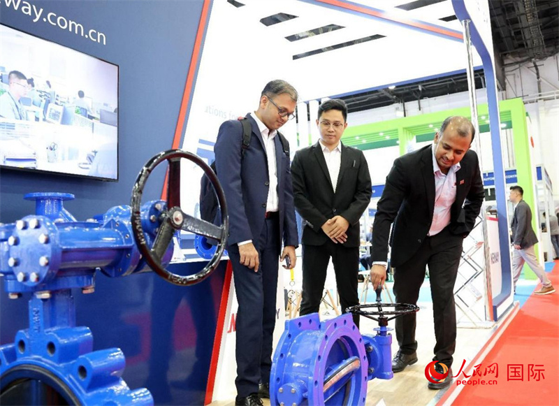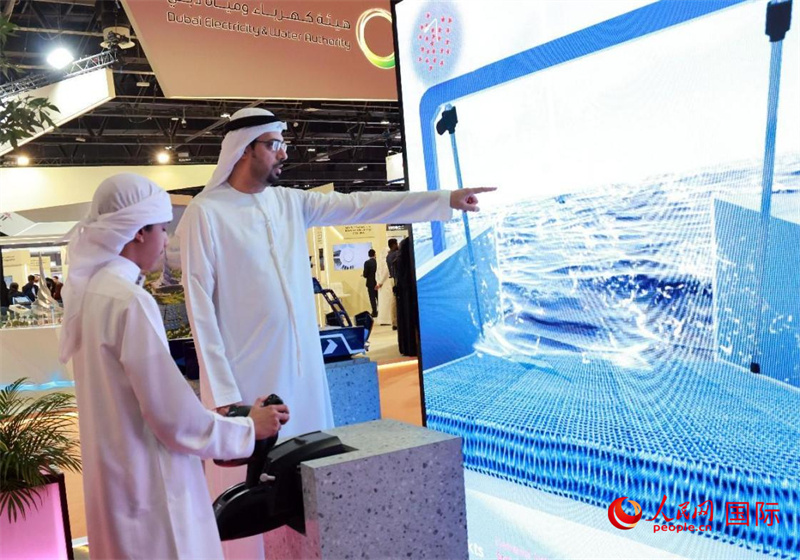 中企推出的綠色能源海水淡化系統(tǒng)吸引參展商關(guān)注。人民網(wǎng)記者 管克江攝