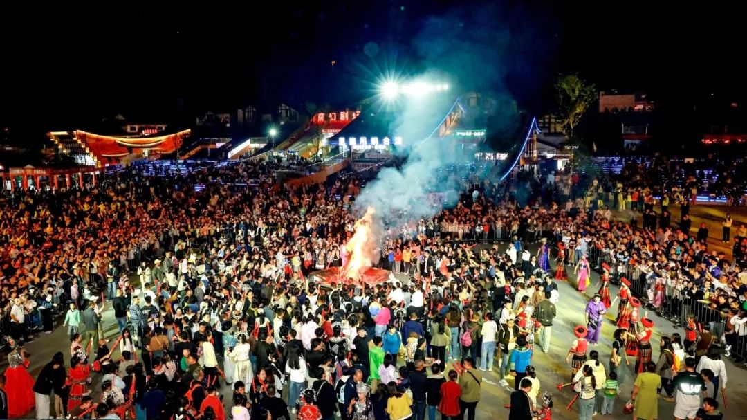 恩施女兒城景區(qū)上演著“人從眾”模式。國(guó)慶專題街區(qū)快閃活動(dòng)、“篝火晚會(huì)”“趕場(chǎng)相親女兒會(huì)”實(shí)景演出,來(lái)自五湖四海的游客共同感受恩施的熱情與豪邁。