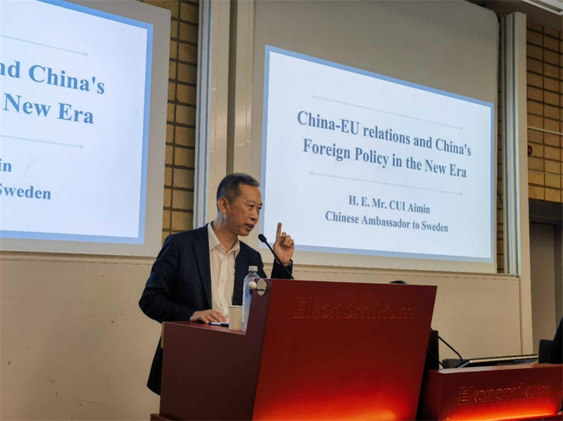 中國(guó)駐瑞典大使崔愛(ài)民訪(fǎng)問(wèn)烏普薩拉大學(xué)并發(fā)表演講。中國(guó)駐瑞典大使館供圖