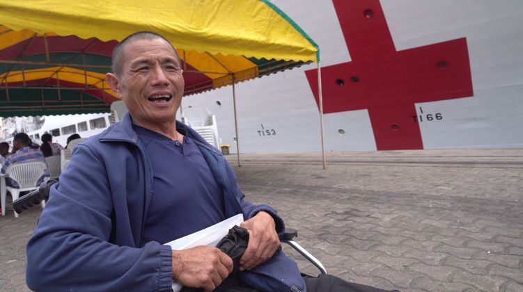 張欣超:患者名叫布萊斯,兩年前在一次車禍中右腿股骨嚴重骨折??紤]到“和平方舟”號醫(yī)院船只停留7天,來不及手術,我們就為他打聽聯(lián)系黑角當?shù)氐尼t(yī)院。我們欣喜地發(fā)現(xiàn),這家2022年運營的醫(yī)院有鋼釘鋼板這樣的醫(yī)療器材,隨后我們聯(lián)系了布萊斯,他聽到后非常開心,表示過幾天再到恩哥約醫(yī)院就診。