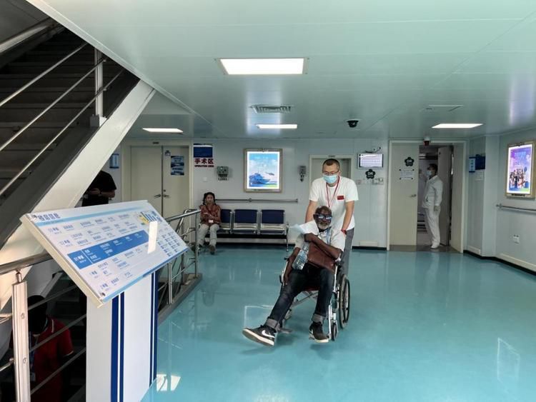 在“和平方舟”號醫(yī)院船??縿偣?布)黑角港期間,“和平方舟”醫(yī)療團隊還前往當?shù)蒯t(yī)院同援剛果(布)中國醫(yī)療隊一起為當?shù)孛癖娺M行診療,當?shù)厝A僑華人也聞訊紛紛登艦求醫(yī)。