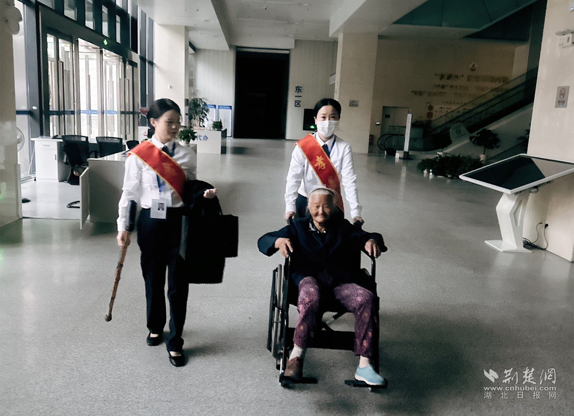 因臨近下班時(shí)間,“孝著辦”工作人員了解情況后,主動(dòng)上前熱情接待并開啟延時(shí)服務(wù),為老人提供輪椅,全程陪同老人辦理相關(guān)業(yè)務(wù)。在辦理完法律援助咨詢業(yè)務(wù)后,考慮到老人行動(dòng)不便,“孝著辦”導(dǎo)服人員全程陪同老人安全乘車。