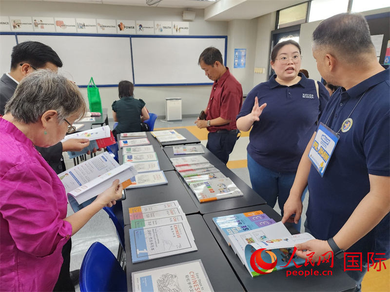 《輕松學(xué)中文》的作者馬亞敏老師與菲律賓華文教師們分享教學(xué)經(jīng)驗(yàn)。人民網(wǎng)記者 樊帆攝