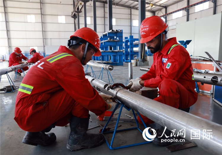 中伊員工共同在檢修鉆井設備。人民網(wǎng)記者 管克江攝