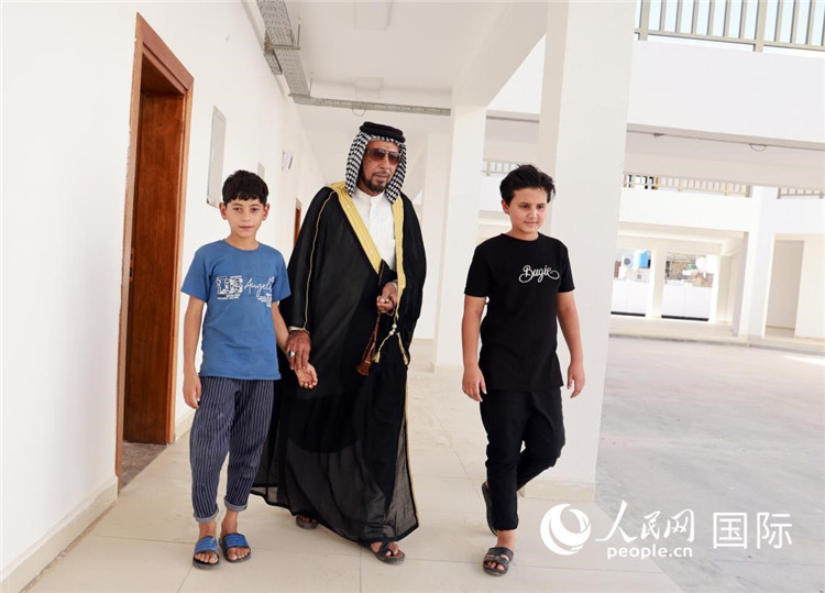 阿卜杜拉帶著孩子們在參觀已完工學(xué)校。人民網(wǎng)記者 管克江攝