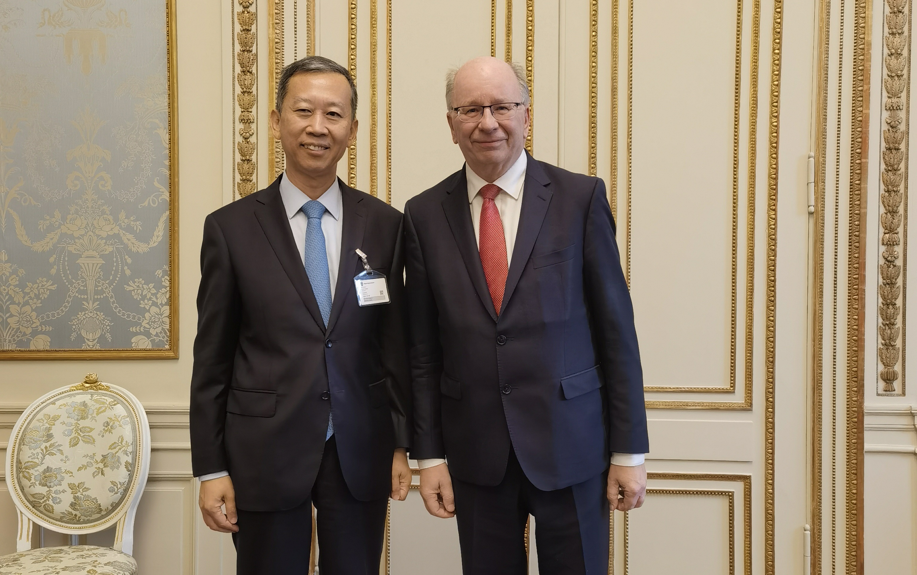 中國駐瑞典大使崔愛民會見瑞典外交國務秘書哈特留斯。 中國駐瑞典大使館供圖