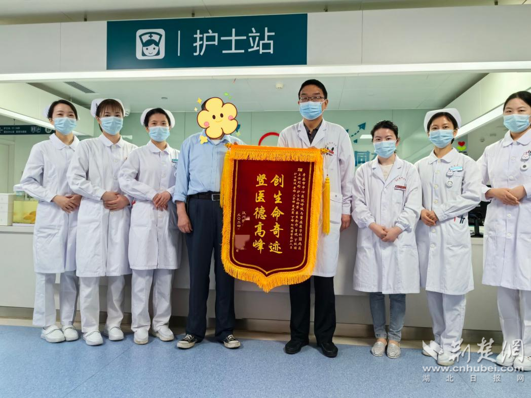 出院當(dāng)天,李爺爺特意將一面繡有“豎醫(yī)德高峰,創(chuàng)生命奇跡”的錦旗贈(zèng)予醫(yī)務(wù)人員,以此表達(dá)自己和家人最誠(chéng)摯的謝意。