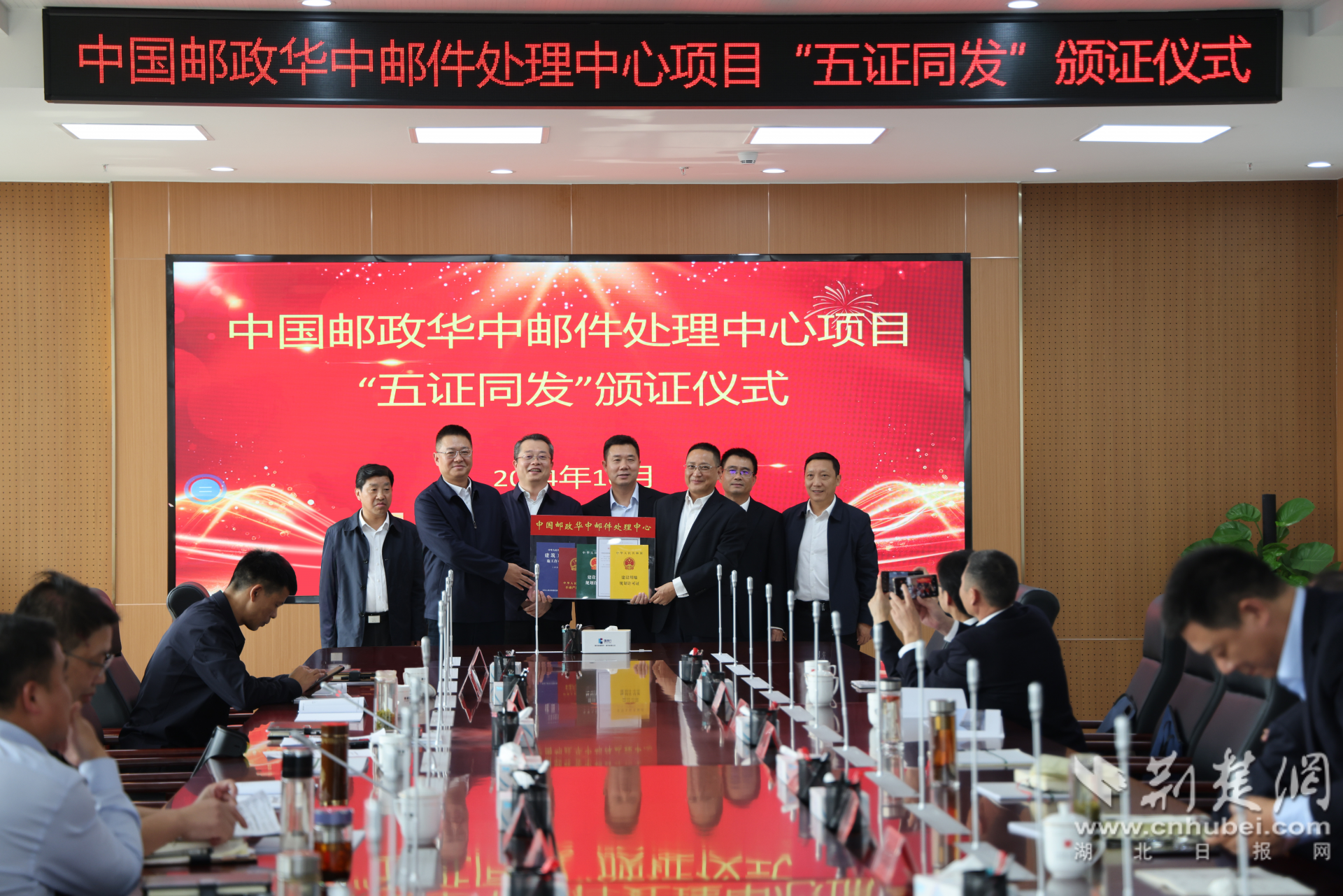 荊楚網(wǎng)(湖北日?qǐng)?bào)網(wǎng))訊(通訊員 肖文丹、饒清雄)10月30日,中國(guó)郵政華中郵件處理中心項(xiàng)目“五證同發(fā)”活動(dòng)在中國(guó)郵政孝感分公司舉行。該項(xiàng)目也是繼6月18日孝南區(qū)頒發(fā)全省首批“一網(wǎng)集成”辦理“五證”后的又一重點(diǎn)項(xiàng)目。