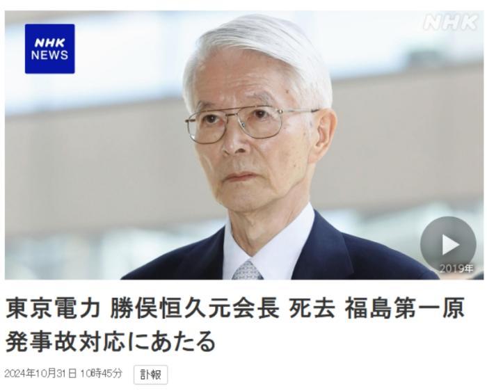 中新網(wǎng)10月31日電 據(jù)日本廣播協(xié)會(huì)(NHK)當(dāng)?shù)貢r(shí)間31日?qǐng)?bào)道,日本東京電力控股公司前會(huì)長(zhǎng)勝俁恒久于10月21日去世,終年84歲。