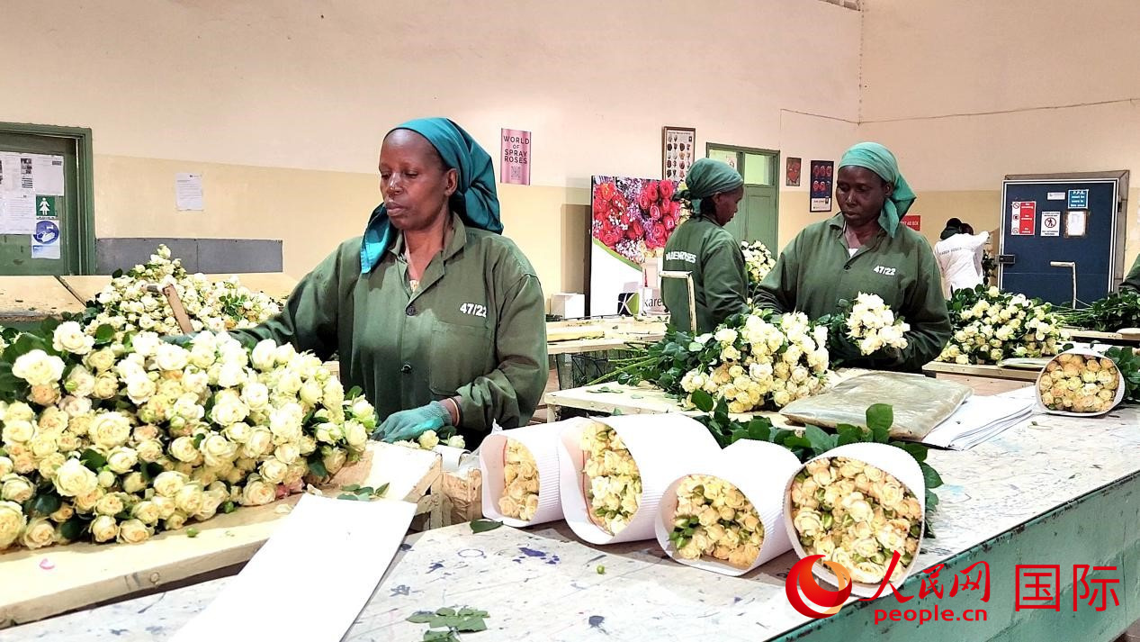 今年,肯尼亞凱倫玫瑰公司將在標(biāo)銀集團(tuán)的支持下參加第七屆進(jìn)博會(huì),展出鮮花、咖啡、牛油果等產(chǎn)品。圖為公司鮮花工廠的工人在包裝剛采摘下來(lái)的玫瑰花。人民網(wǎng)記者 黃煒鑫攝