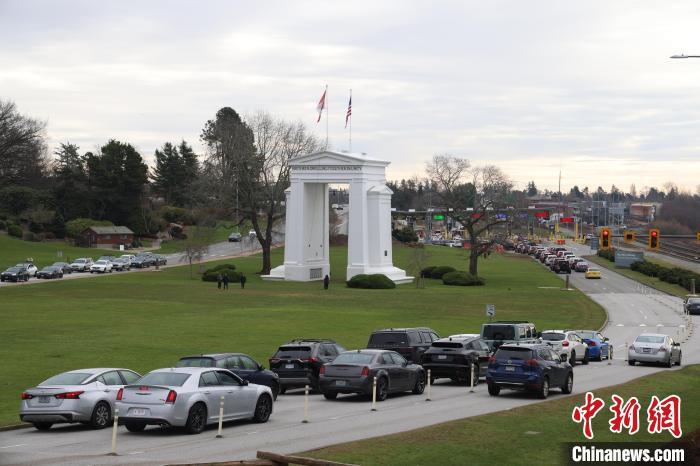 資料圖為2024年2月10日拍攝的位于加拿大不列顛哥倫比亞省素里市(Surrey)的和平拱門加美邊境口岸。中新網(wǎng)記者 余瑞冬 攝