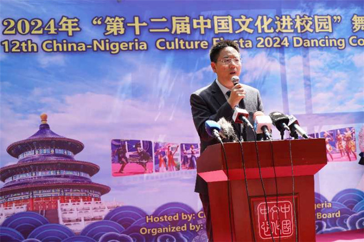 中國駐尼日利亞大使館文化參贊兼尼日利亞中國文化中心主任楊建興致辭。尼日利亞中國文化中心供圖