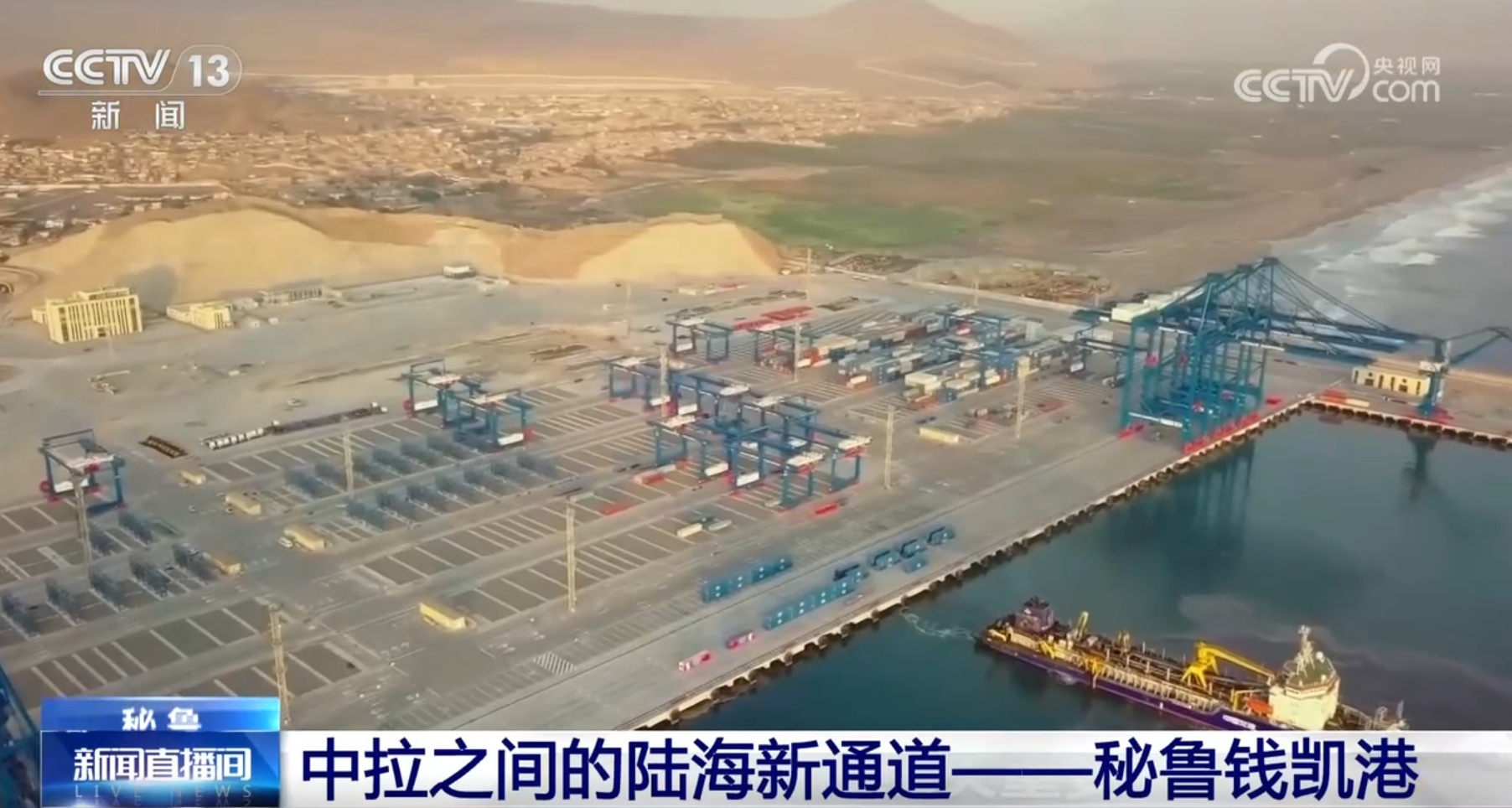 央視網(wǎng)消息:位于秘魯首都利馬以北錢凱灣內(nèi)的錢凱港,是中秘共建“一帶一路”重要項目,也是南美首個智慧港口,是中國和秘魯兩國合作共贏、互利互惠的典范,更是中拉合作的生動縮影。下面我們通過一個短片,來了解這條中拉之間的陸海新通道。