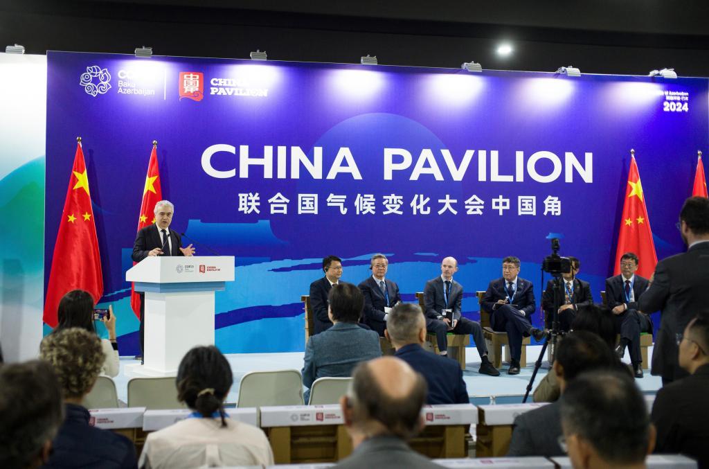 這是11月13日在阿塞拜疆首都巴庫拍攝的聚焦中國能源轉(zhuǎn)型與新能源發(fā)展的中國角邊會(huì)活動(dòng)現(xiàn)場。新華社記者孟菁攝
