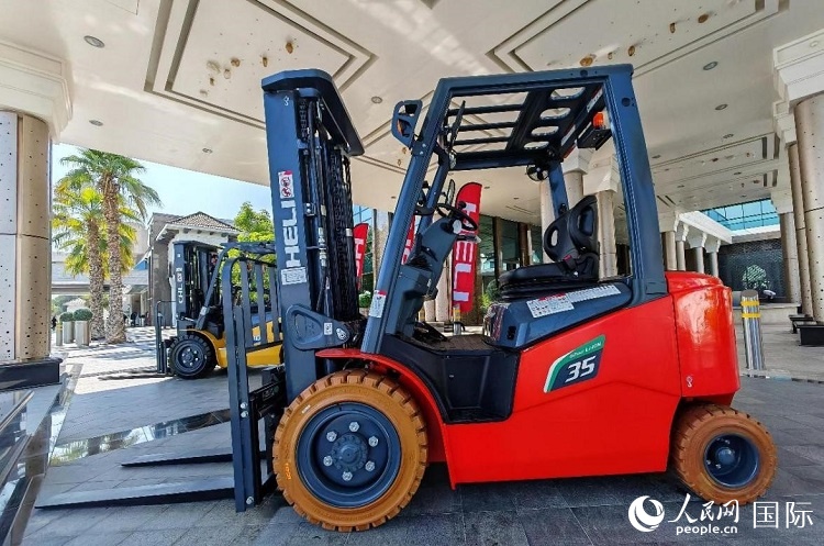 | 活動(dòng)現(xiàn)場(chǎng)展示的合力新能源叉車。人民網(wǎng)記者 管克江攝 |
