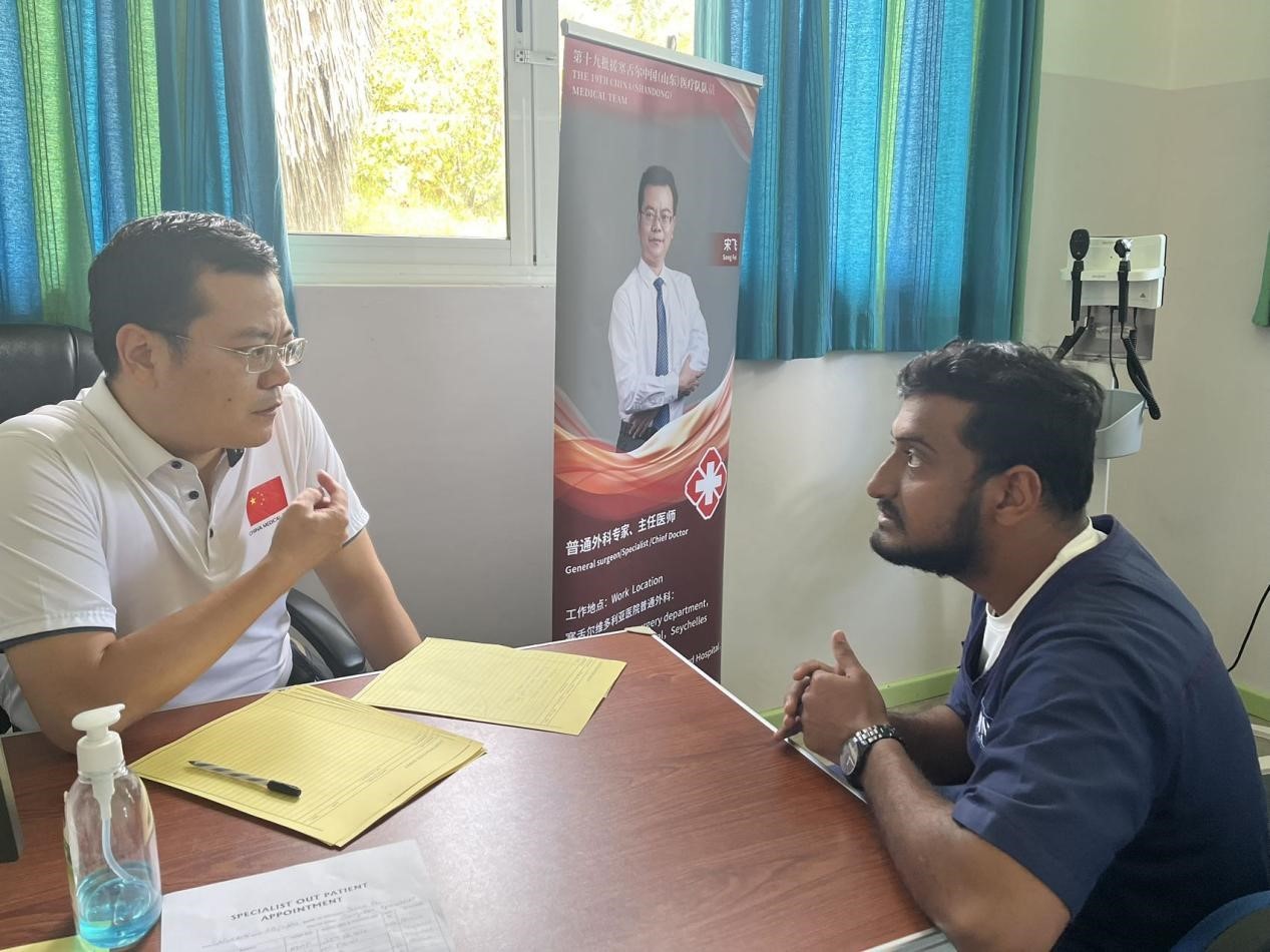 患者在就診。中國(guó)援塞舌爾醫(yī)療隊(duì)供圖