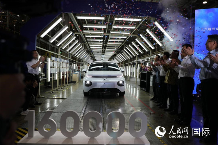 11月27日,上汽通用五菱印尼公司第16萬輛整車暨“云朵”(電動汽車)出口車成功下線。人民網(wǎng)記者 曹師韻攝