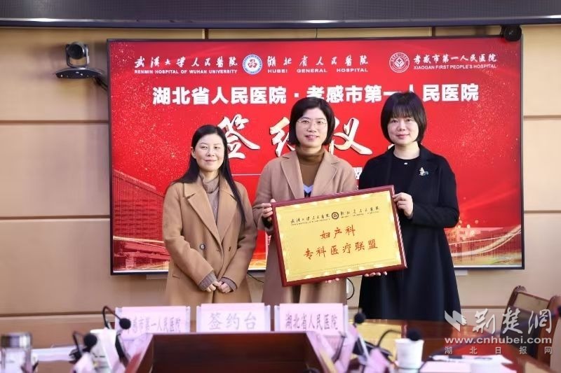 荊楚網(wǎng)(湖北日?qǐng)?bào)網(wǎng))訊(通訊員胡佳萍)11月28日,武漢大學(xué)人民醫(yī)院授予孝感市第一人民醫(yī)院“婦產(chǎn)科??漆t(yī)療聯(lián)盟”“胃腸外科??坡?lián)盟”和“林慧慶教授專家團(tuán)隊(duì)工作室”牌匾,并現(xiàn)場(chǎng)簽約,開啟兩院合作新篇章。